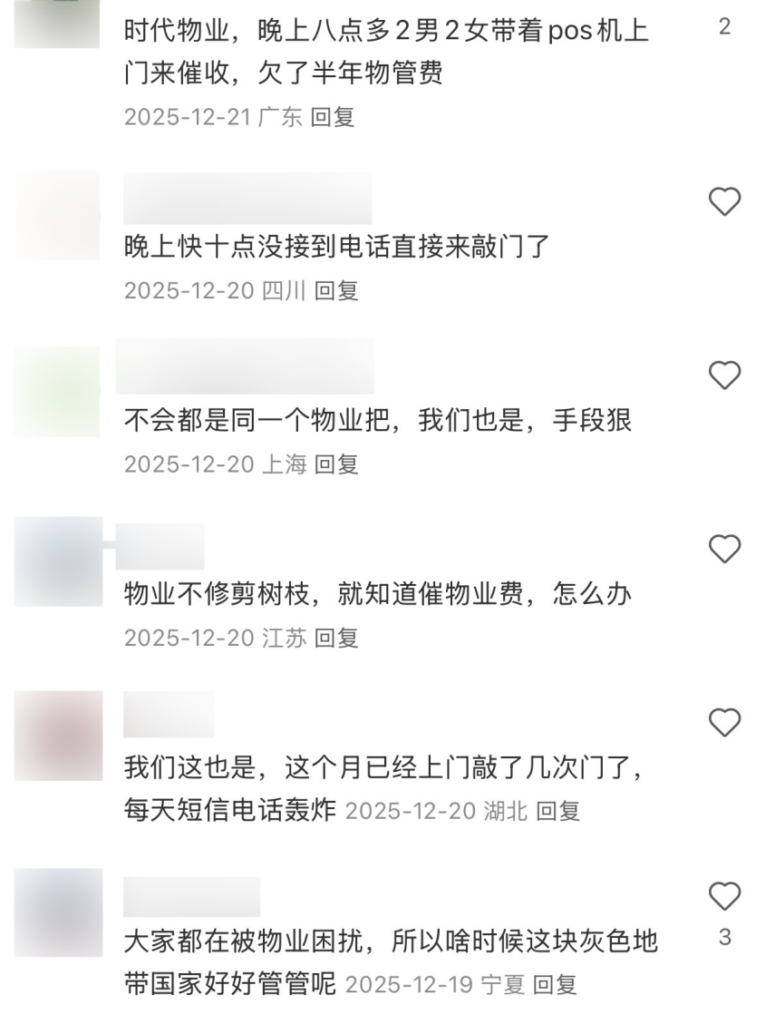 有人说收到物业发来的恐吓催收短信;还有人说物业晚上10点还上门催缴;甚至有人认为物业不干正事,只知道催款。